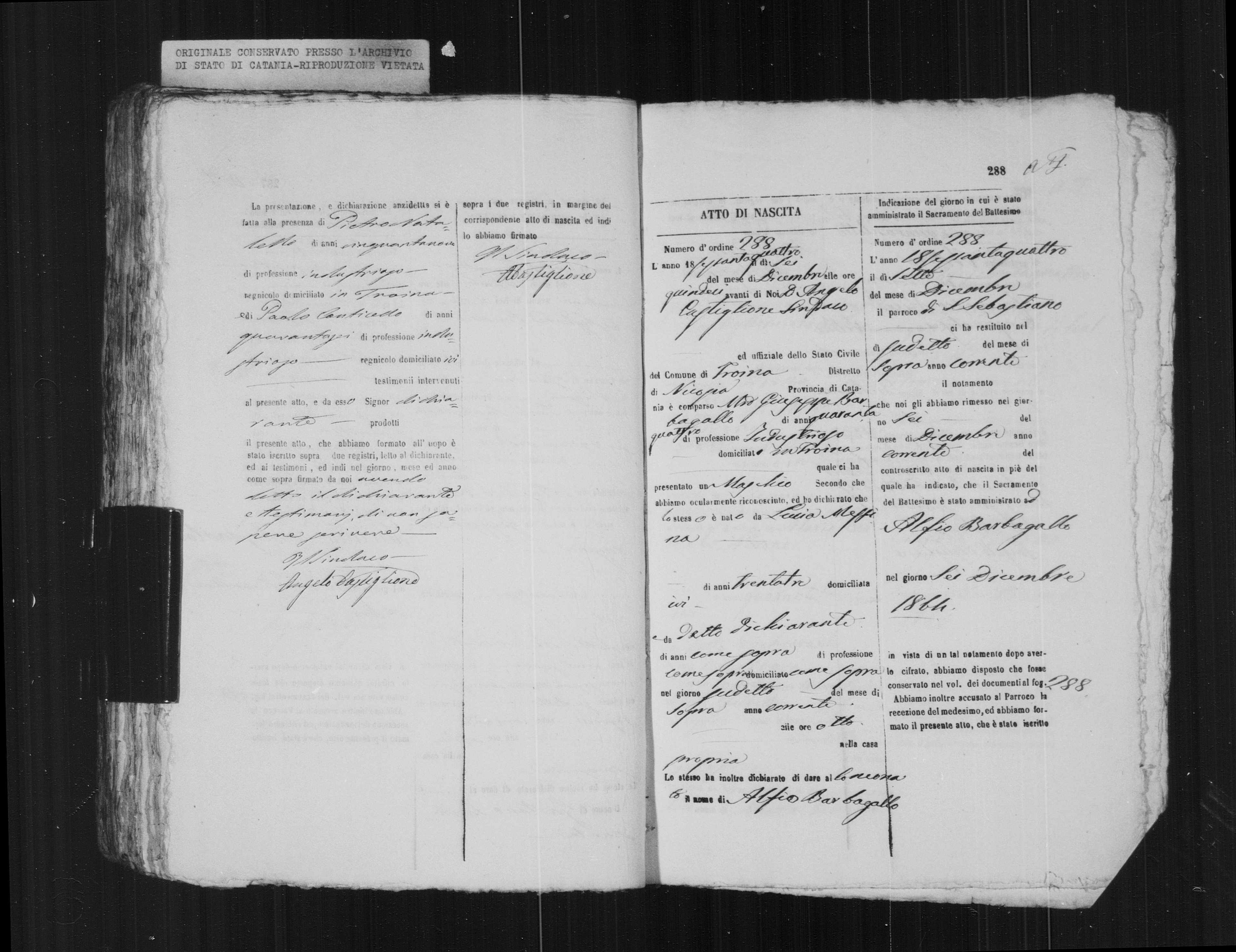 Alfio Barbagallo Baptism record (image 1): Alfio Barbagallo Atto di Nascita (image 2):
