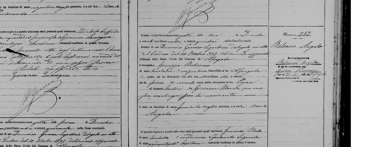 Angela Balsamo, Birth 1897. Looks like an annotation for a marriage in 1930, to Vincenzo Giacco. I HOPE they had a child