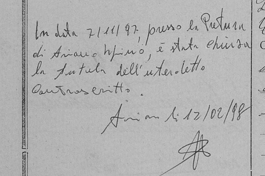 In data 7/11/97, presso la Pretura di Ariano Irpino, è stata chiusa la tutela dell'interdetto controscritto.