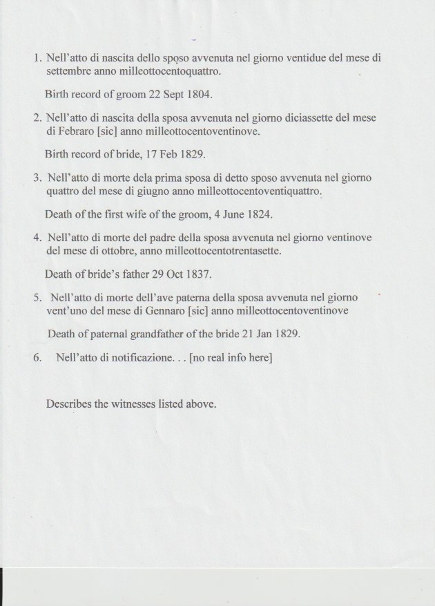 Here is a description for each of those references found on the 'processetti' ----- these are the documents that the happy couple should have turned into the Mayors office and may or may not be found in the Allegati records.
